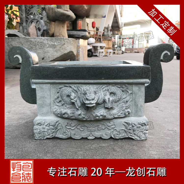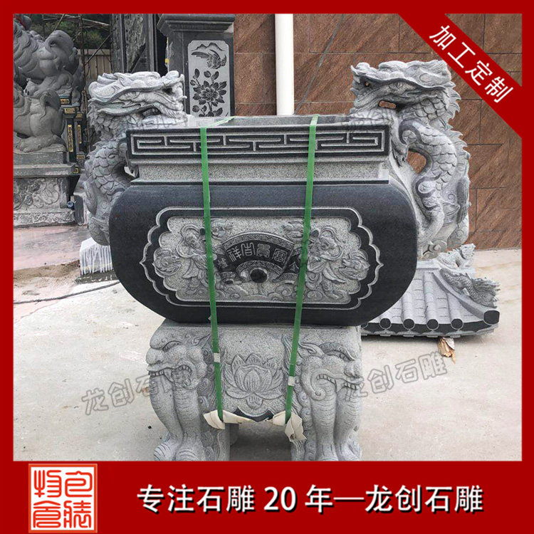 寺廟石雕香爐,佛教中稱它寶鼎,除了方形的香爐外,還有圓形。圓形香爐都有三足,一足在前,兩足在后,是如法的放置;常以之譬喻佛教中的三寶,缺一不可。中華民族香文化發(fā)展得很早,古時(shí)候的人就常以焚香木熏居室以除臭穢,所以古人讀書彈琴,喜歡先焚一爐香,可以凈雜念而使精神集中。重視欽水思源,慎終追遠(yuǎn)是中國人的美德,所以自古以來,華人都拜天地神祗,祭祖先;上香表示敬意,是祭拜儀式中的一個(gè)主要項(xiàng)目,香爐就派上用場了。