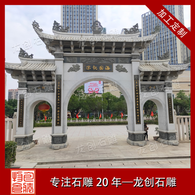 雕刻工藝的好壞也是決定牌樓價格的因素之一,石牌樓雕刻工藝分為一般工藝和精湛工藝。例如石材、樣式、大小相同的一座三門七樓的石牌樓,采用一般工藝雕刻出來的石牌樓價格在18萬左右,而采用精湛工藝雕刻出來的農(nóng)村牌坊價格在23萬左右,通過以上例子中就能看出一般工藝和精湛工藝在價格中的懸殊。