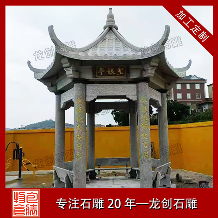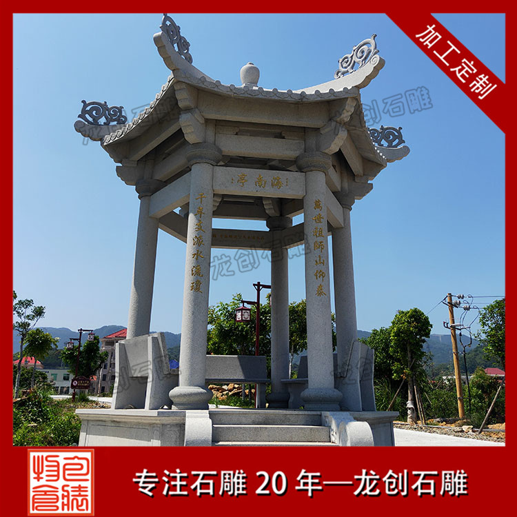 首先,要選擇石材。石涼亭需要的石材質(zhì)地要求較高,一般是選擇花崗巖、石灰?guī)r、大理石等石質(zhì)較硬的材料,因?yàn)檫@些材料可以耐久耐磨,而且不容易受天氣、風(fēng)吹日曝的影響。