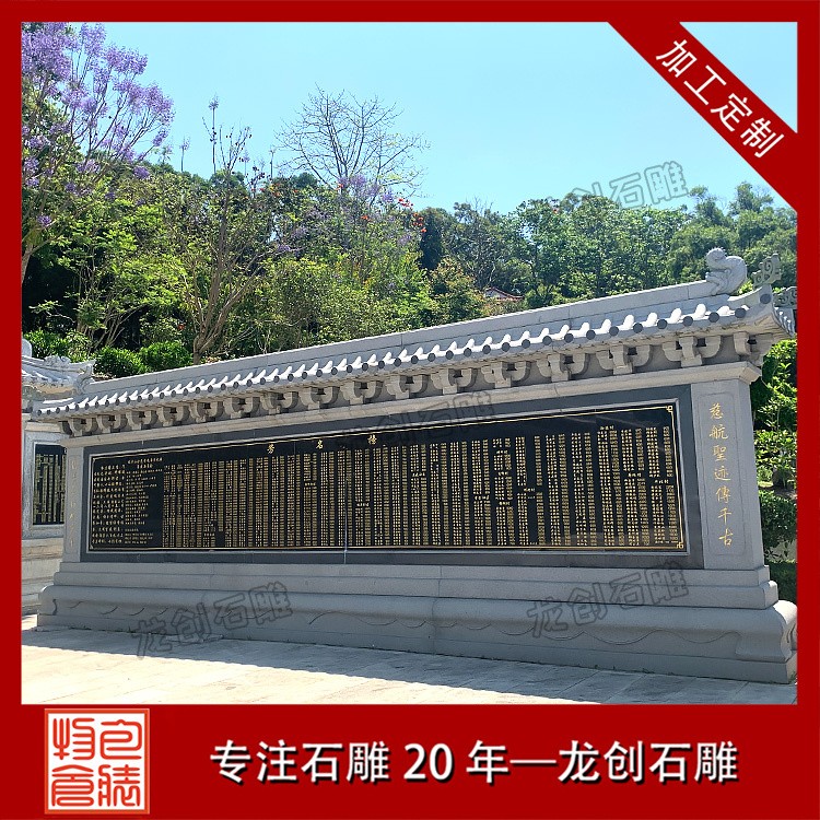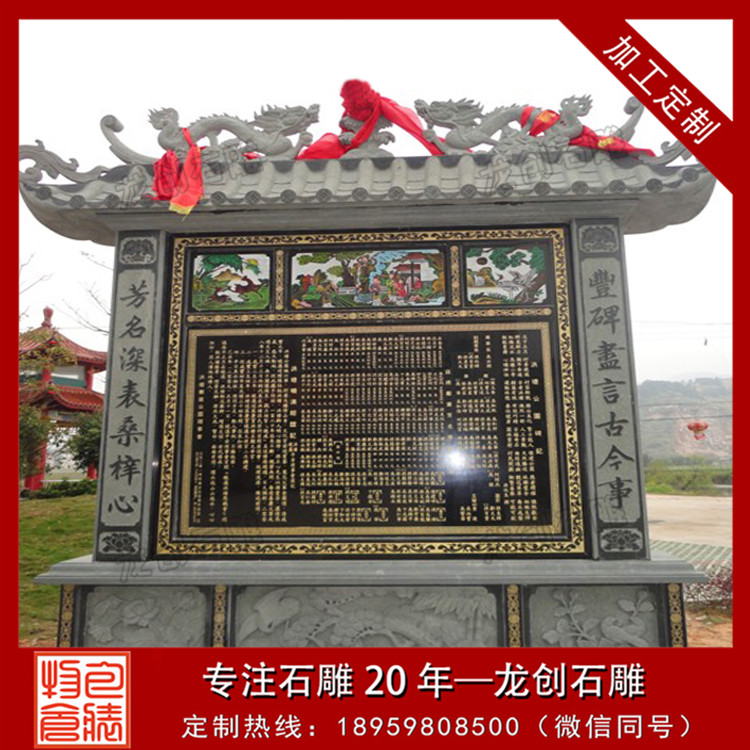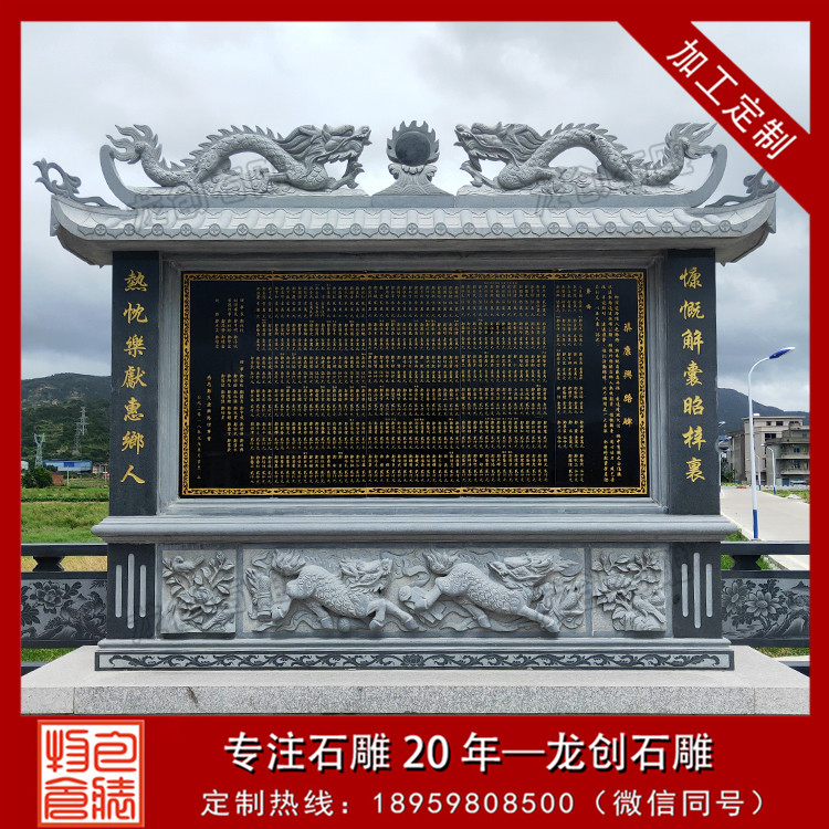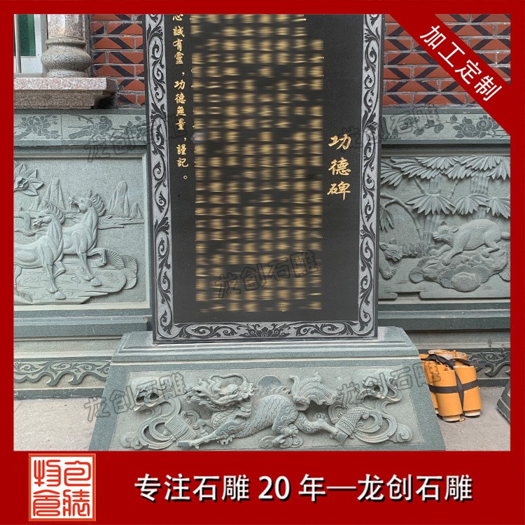 設(shè)計(jì)特點(diǎn):通常由一塊長(zhǎng)方形的石頭精心雕刻而成,上面刻有詳盡的文字內(nèi)容,如表彰對(duì)象的姓名、事跡、貢獻(xiàn)等,以及相關(guān)的圖案或浮雕,以生動(dòng)形象地展現(xiàn)功德事跡的輝煌與偉大。