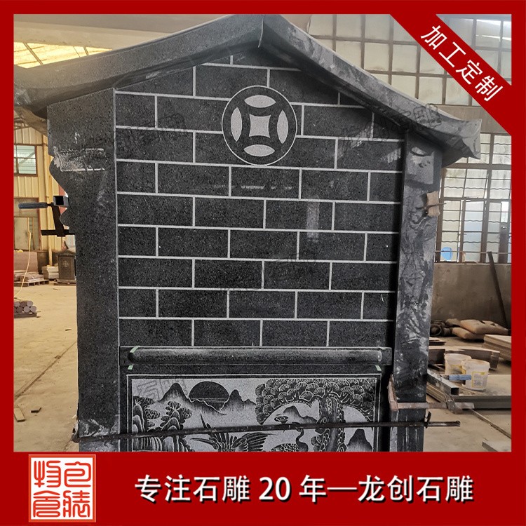 在浙江寧波的金蓮寺改造項(xiàng)目中,一座精美的石雕土地廟成為點(diǎn)睛之筆。這座土地廟采用優(yōu)質(zhì)芝麻黑654石材,質(zhì)地堅(jiān)硬,色澤溫潤(rùn)。廟身的雕刻工藝精湛絕倫,高2.9米,寬1.36米,深度1.63米,整體造型古樸典雅,遵循傳統(tǒng)廟宇建筑風(fēng)格,飛檐斗拱線條流暢,比例協(xié)調(diào);墻體厚實(shí),雕紋精美,線條流暢。其內(nèi)部空間布局合理,土地神像安置其中,更顯威嚴(yán)。