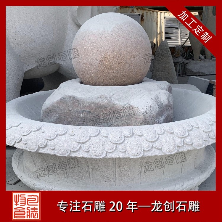 花崗巖質(zhì)地堅(jiān)硬、耐磨損、抗風(fēng)化,即便長期置于戶外,歷經(jīng)風(fēng)吹日曬、雨淋霜打,也能保持形態(tài)完好、色澤如初,因此常被用于公園、景區(qū)等露天場所的大型風(fēng)水球制作;漢白玉質(zhì)地細(xì)膩、色澤溫潤,雕刻后線條流暢、光澤柔和,更適合室內(nèi)裝飾或小型擺件,放置于書房、客廳,自帶雅致格調(diào);晚霞紅大理石紋理絢麗,紅中帶紫、紫中透粉,搭配流水轉(zhuǎn)動(dòng)時(shí),光影交錯(cuò)間更具觀賞性,多用于高端社區(qū)、酒店大堂等注重視覺體驗(yàn)的空間,為環(huán)境增添一抹靈動(dòng)與雅致。