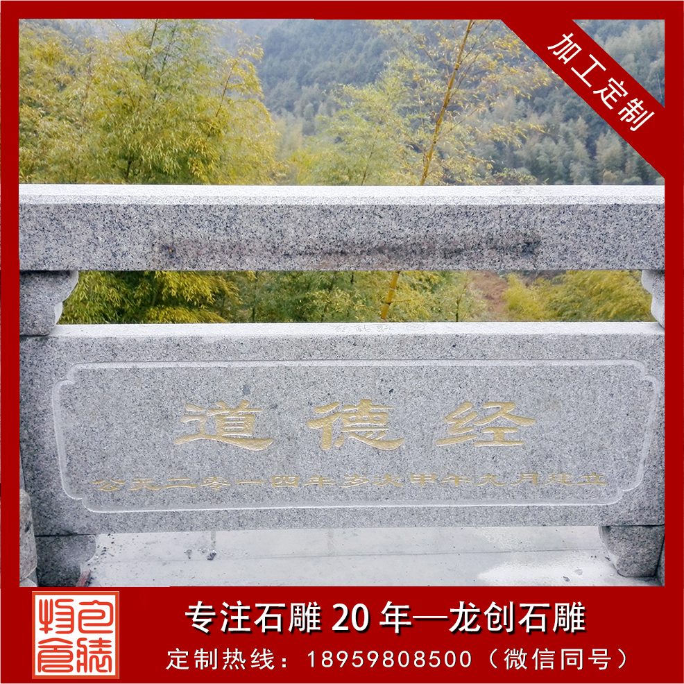 為了更好的與二殿祭拜“馬氏三仙”的習(xí)俗吻合,龍創(chuàng)石雕公司特別為其定制了道德經(jīng)的石雕欄桿,將道德經(jīng)經(jīng)文刻于欄板上。讓前來(lái)游玩的游客除了能夠賞到美景,也能夠更好的了解到當(dāng)?shù)亓?xí)俗。