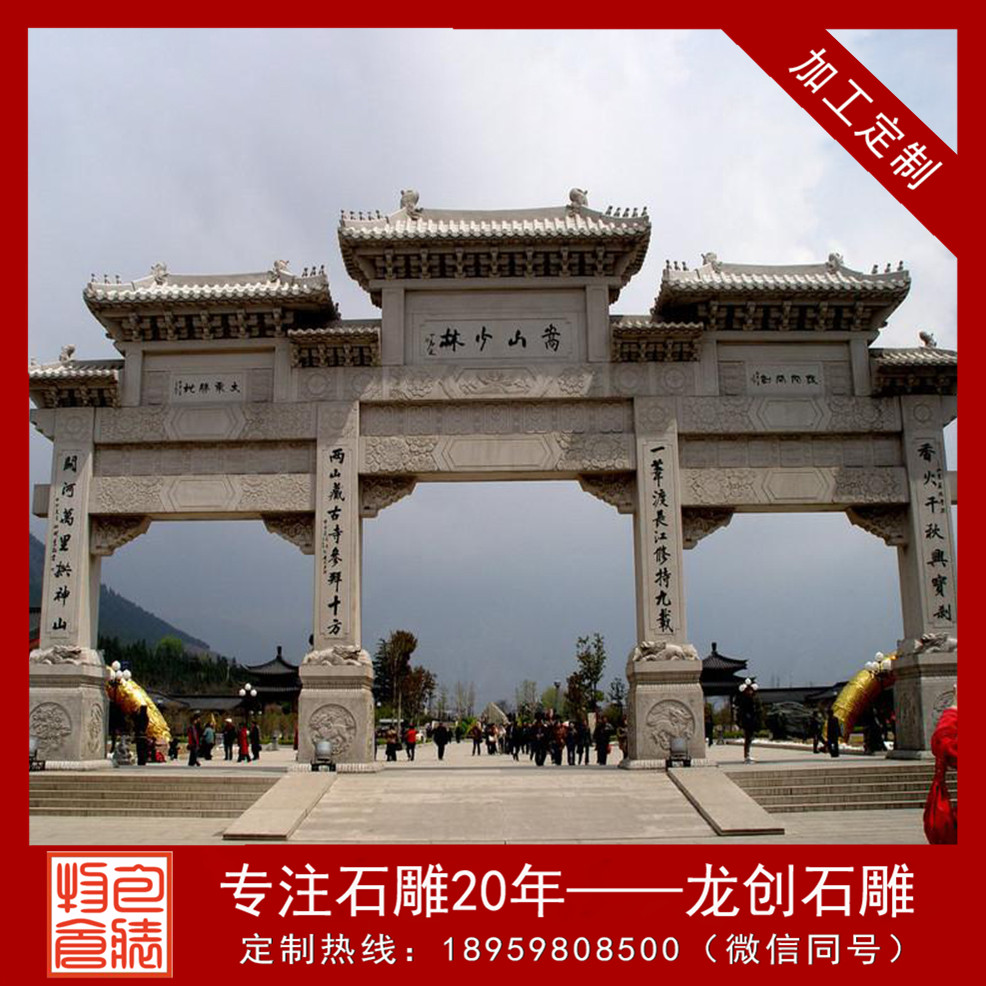 訂購石雕山門牌坊 山門牌坊廠家龍創(chuàng)石雕歡迎您的來電!