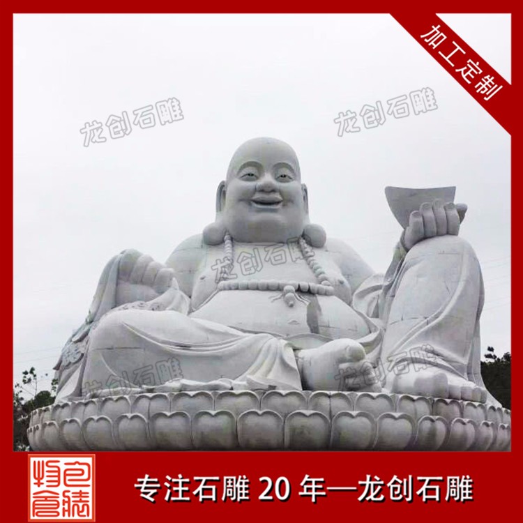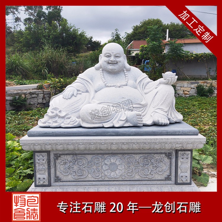 現(xiàn)在人們說到石雕彌勒佛佛像,印象深刻的就是他那張充滿笑容的臉,而這樣的彌勒佛我們稱之為笑口常開彌勒佛,而這種形態(tài)的石雕彌勒佛雕像從漢朝進(jìn)入中國以來就這樣固定化了,人們用一位胖胖的中年人來寓意彌勒佛,一來是這樣的偉家見能得到人們的喜愛,二來也是因?yàn)槲磥矸鸬淖饔镁褪亲屖澜绯錆M歡笑吧,三來也是教導(dǎo)人們凡事都應(yīng)該用笑去面對(duì)未來。
