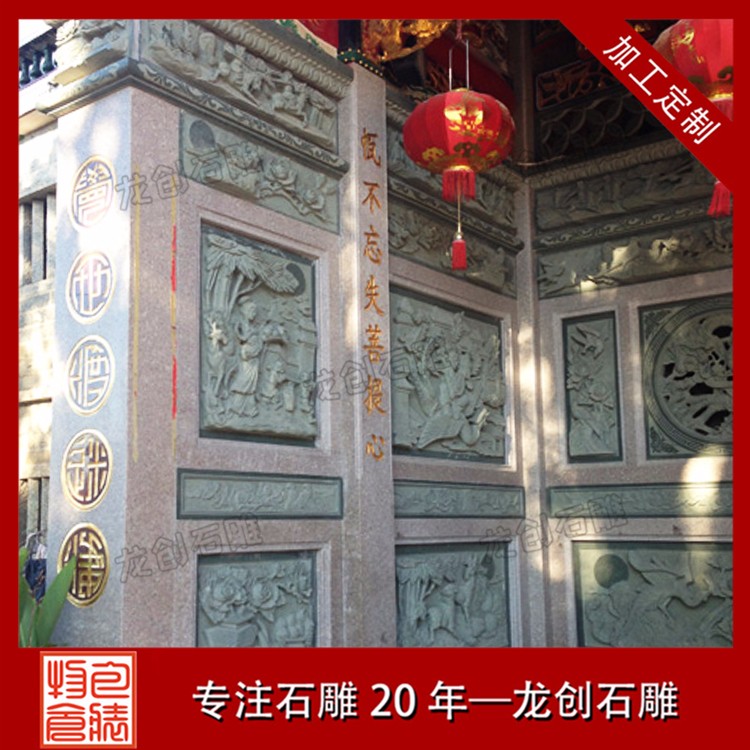 宗祠青石浮雕墻在現(xiàn)在的建筑中應(yīng)用很廣泛,祠堂浮雕是雕刻的一種,雕刻者在一塊平板上將他要塑造的形象雕刻出來(lái),使它脫離原來(lái)材料的平面。福建宗祠青石浮雕墻是雕塑與繪畫(huà)結(jié)合的產(chǎn)物,用壓縮的辦法來(lái)處理對(duì)象,靠透視等因素來(lái)表現(xiàn)三維空間,并只供一面或兩面觀(guān)看。福建宗祠青石浮雕墻按需定制,找惠安龍創(chuàng)石雕。