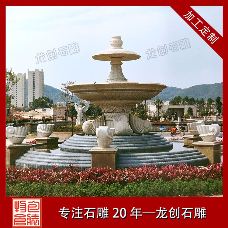 園林景觀石雕噴泉水缽雕塑是一種石材做成的盆狀或者罐狀的石雕作品,一般來說周邊有雕刻的紋路以及雕刻的附加飾品,然后組合成一個比較大的裝水,儲水的容器,并且部分石雕噴泉雕塑利用水壓把水從石雕噴泉雕塑的上端噴或者流出,形成一種特別的景象的石雕產(chǎn)品。石雕噴泉雕塑作為一種裝飾產(chǎn)品,所以一般適用于比較高檔的裝飾,不過隨著社會的發(fā)展,現(xiàn)在的水平高中低檔的價格可以滿足不同客戶的需求,從高端裝飾慢慢的成為了家居擺件,公司擺件,公園擺件,景區(qū)擺件等等。