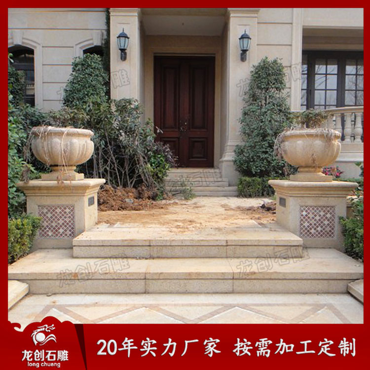 黃金麻石雕花缽和埃及米黃石雕花缽,是園林景觀設(shè)計中運用廣泛造景元素,很多植物園、公園、草坪、廣場等處都有黃金麻和埃及米黃石雕花缽的應(yīng)用,使用不同品種不同顏色的異型石材可以與周圍景觀環(huán)境結(jié)合形成不同的視覺效果,對園林景物之間和諧、統(tǒng)一起到了很好協(xié)調(diào)作用。