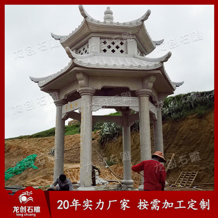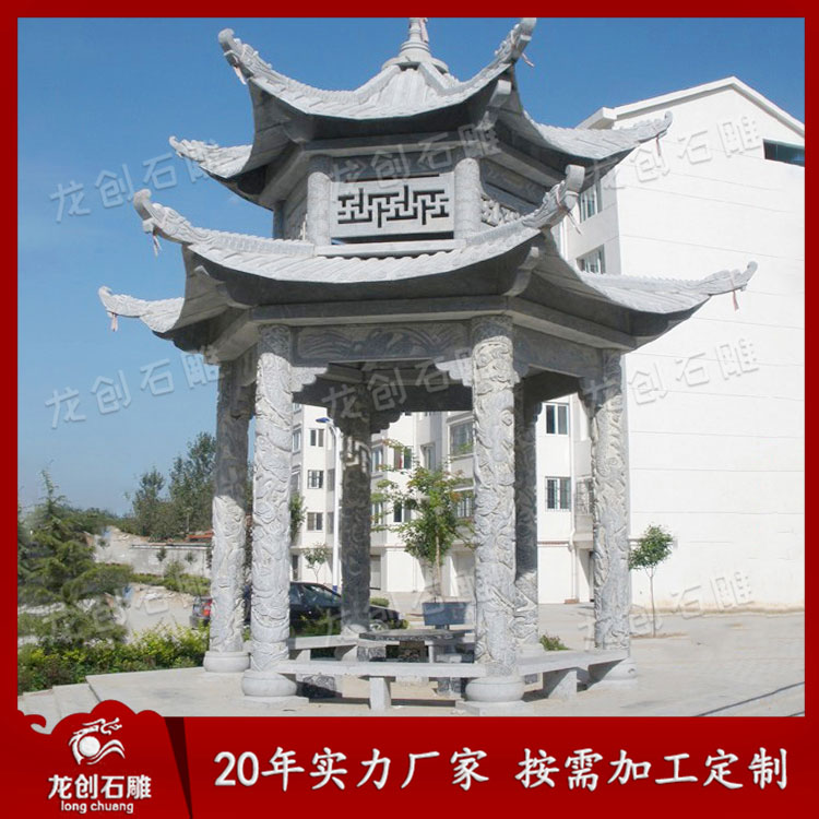 石雕雙層涼亭作為一種景觀建筑,經(jīng)常的與空間環(huán)境作為主題形式出現(xiàn)。這樣我們可以從各個角度欣賞。但是它又不是一個實體,更多地強(qiáng)調(diào)其虛空的內(nèi)部與周圍的空間環(huán)境之間的聯(lián)系,這樣就通過建筑造型的外在形象,在周圍空間中起到點(diǎn)睛的作用。它追求的是一種整體美、自然美、古典美。