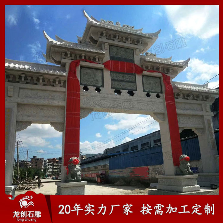 在生活中大型石雕牌坊制作安裝的場所挺多的,在新農村、風景區(qū)、寺院等地方都開始慢慢地建造大型石雕牌坊了。大型石雕牌坊在制作上采用了多樣化的雕刻工藝,雕刻制作出許多細致精湛的圖案,讓其與環(huán)境相互輝映,更具樸素質感貼近大自然。