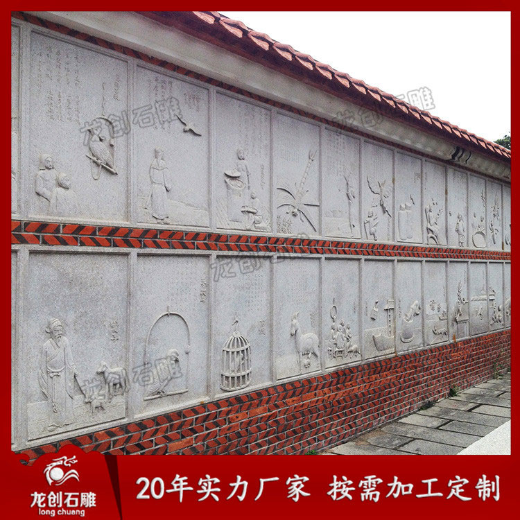 制作寺廟浮雕文化墻有一系列的注意事項(xiàng):首先是文化墻的規(guī)格要是在丁蘭尺上的紅字刻度。丁蘭尺也叫魯班尺,是風(fēng)水學(xué)中很重要的一項(xiàng)工具,上面有吉祥和不吉利的兩種尺寸,使用紅字刻度的就代表著吉祥。其次是浮雕的高度。寺廟的浮雕墻是以人物故事為主的,通常還有一定的背景,而要將整個場景完全表達(dá)出來是不可能的,因此為了盡可能地區(qū)分主次,通常會對浮雕的雕刻內(nèi)容進(jìn)行高低區(qū)別雕刻,即對近景雕刻得高一些,清晰一些,遠(yuǎn)景矮一點(diǎn),稍微抽象一點(diǎn)。
