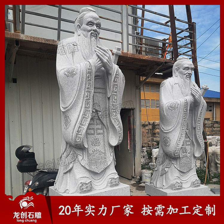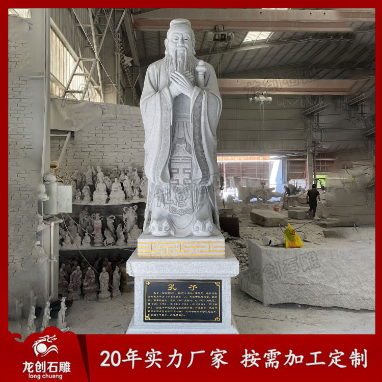 孔子老先生是儒家文化的創(chuàng)始人,對(duì)于子孫后代都產(chǎn)生了深遠(yuǎn)的影響,現(xiàn)在很多學(xué)校和景區(qū)公園都會(huì)樹立一座孔子像,讓世人們能夠?qū)W習(xí)文化知識(shí)。孔子的形象是偉岸的,現(xiàn)在出現(xiàn)在我們眼睛中的孔子像都是雕刻師傅雕刻出來的,孔子石材雕刻需要選擇工藝好的廠家,漢白玉石雕孔子像廠家,惠安龍創(chuàng)石雕,歡迎您來電咨詢。