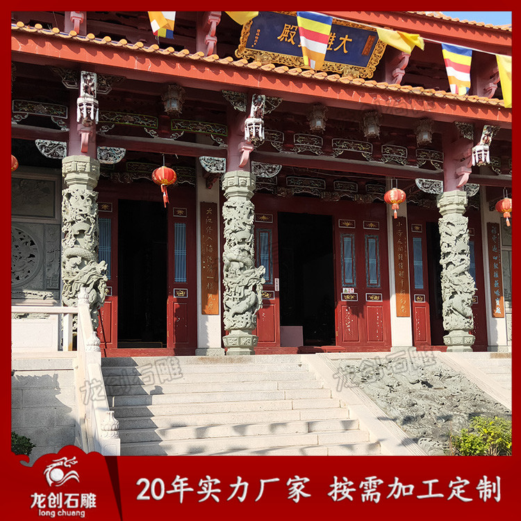 石雕龍柱在當(dāng)今社會(huì)的應(yīng)用非常廣泛,通常在寺廟、廣場(chǎng)、公園等都可以見到石雕龍柱,安裝在寺廟的龍柱較為常用石料的是青石龍柱,且工藝要求高。寺廟石雕龍柱由多種工藝制作,有圓雕,透雕,線雕,平雕,浮雕等工藝。石雕龍柱外形有圓形石雕龍柱和棱形石雕龍柱。泉州青石龍柱廠家,選匠心制作二十年,龍創(chuàng)石雕。