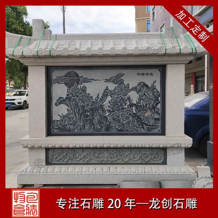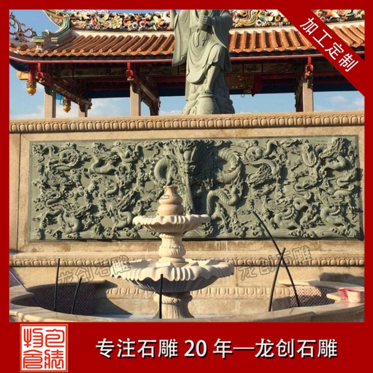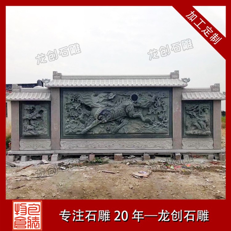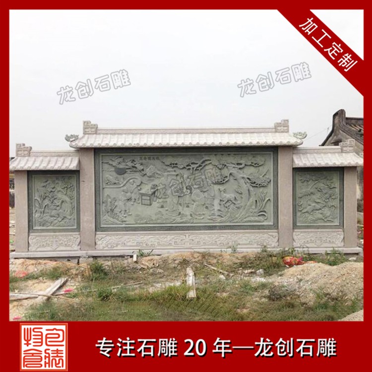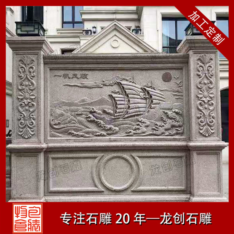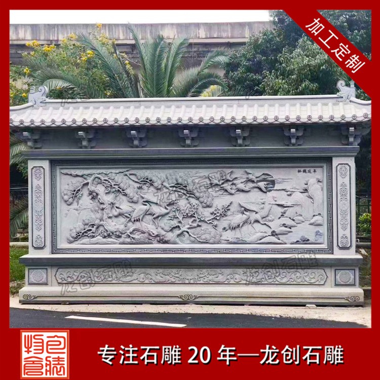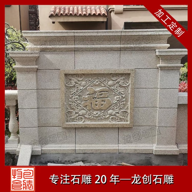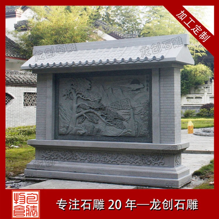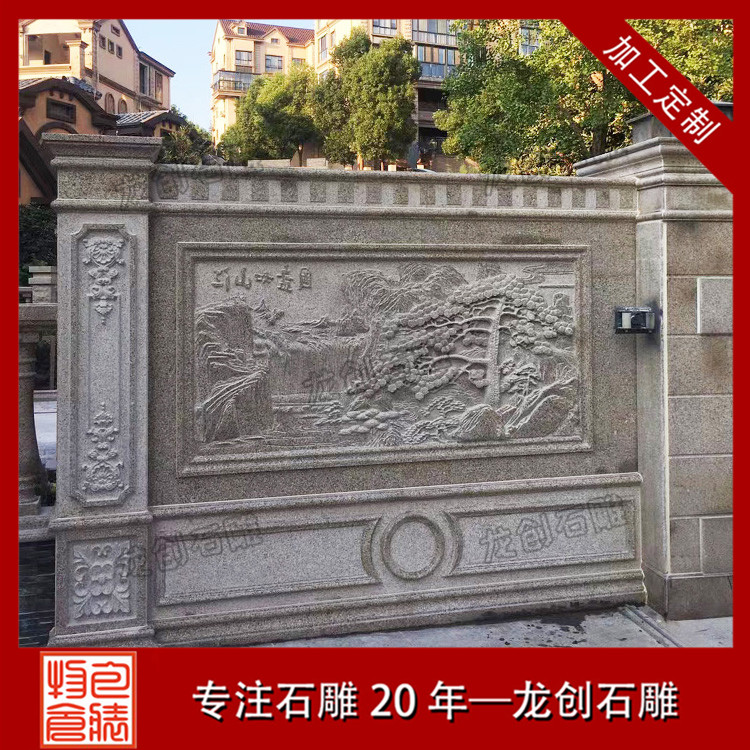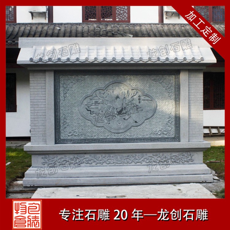 石材浮雕照壁就是用石材雕刻的一種墻面,也稱石雕影墻、石雕照墻,是古代寺廟、宮殿、官府衙門和深宅大院前的一種建筑,即門外正對大門以作屏障作用的墻壁。石雕照墻定制,選惠安龍創(chuàng)石雕。