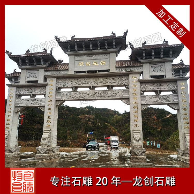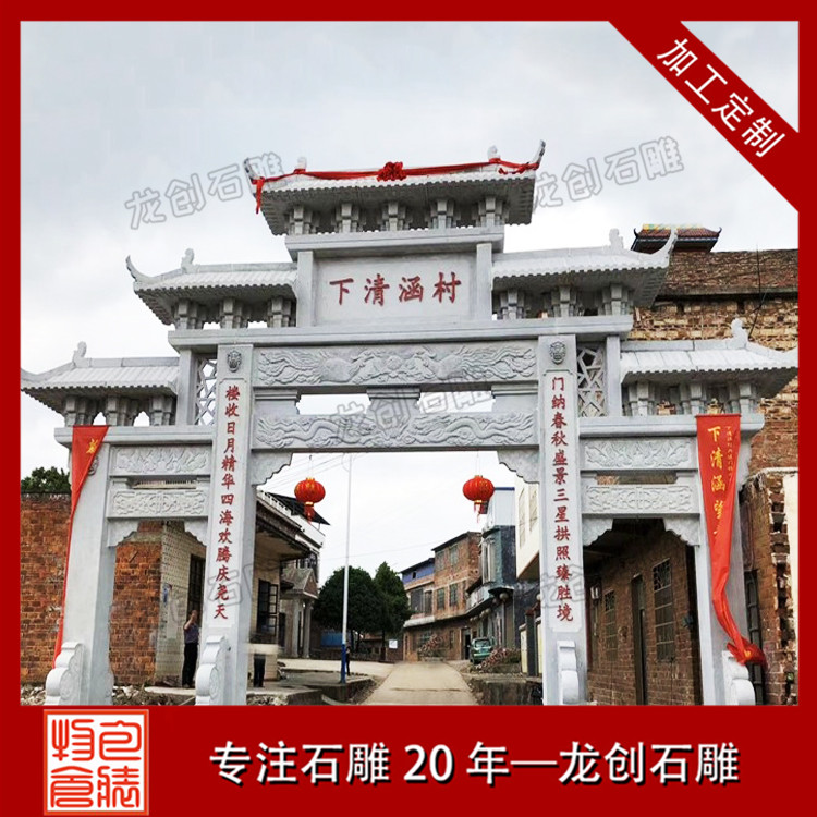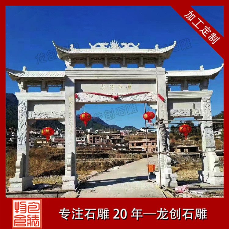 石雕牌坊是我國傳統(tǒng)古建筑的一部分,村莊石雕牌坊也稱村口石雕牌坊、農(nóng)村石雕牌坊,一般是建在村莊的入口處,村莊石雕牌坊是一種仿古建筑,古樸大方,具有很高的歷史文化價(jià)值和觀賞價(jià)值。