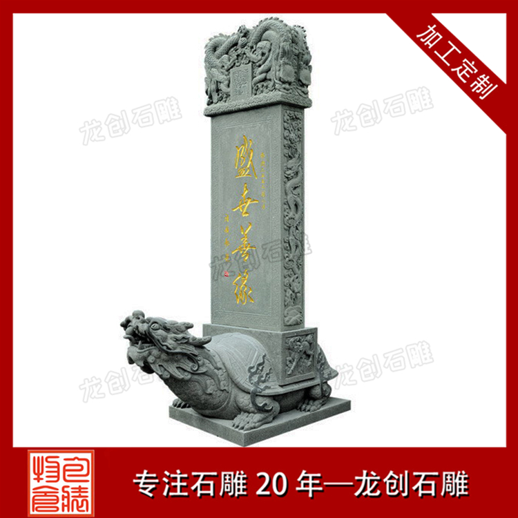 龜馱碑一般采用天然石材制作,常見的材質(zhì)有大理石、花崗石、青石等。這些石材都具有堅硬、耐磨、耐久的特性,能夠經(jīng)受住風(fēng)吹雨打和時間的考驗。同時,它們也具有良好的雕刻性能,可以雕刻出精細(xì)的圖案和文字。