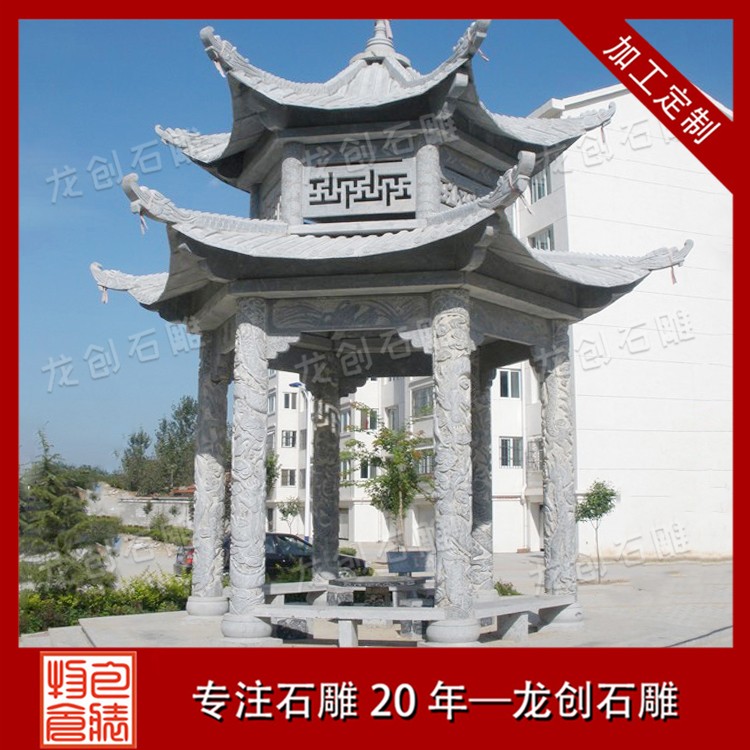 屋頂是亭子的頂部結(jié)構(gòu),通常由石板或石瓦組成,形成一個(gè)傾斜的斜面或平面。屋頂?shù)男螤詈蜆邮剑ㄈ鐔伍?、重檐等)取決于亭子的整體設(shè)計(jì)。屋頂上可能雕刻有圖案或動(dòng)物形象。
