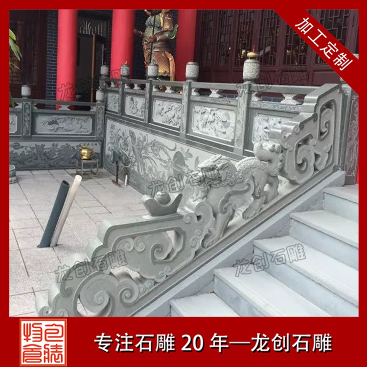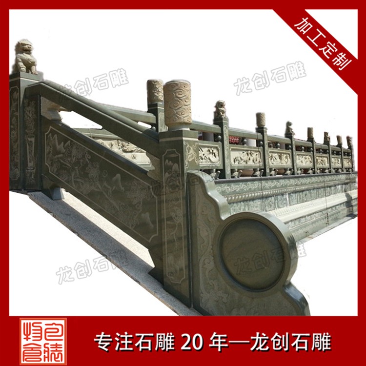 4.材質(zhì)多樣:石雕護(hù)欄的材質(zhì)多樣,包括青石、花崗巖、漢白玉等,不同的材質(zhì)具有不同的紋理和色彩,能夠滿足不同環(huán)境和需求下的使用要求。
