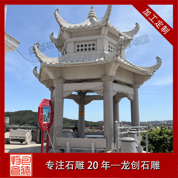 在實際應(yīng)用中,六角涼亭適合置于庭院中心、水岸平臺或景觀軸線的節(jié)點位置。常見尺寸為檐口直徑3-4.5米,地面至寶頂高度4-6米。選購時應(yīng)重點關(guān)注石材的質(zhì)地均勻度、構(gòu)件加工精度及結(jié)構(gòu)安全性,確保各連接部位結(jié)合緊密。安裝時需做好基礎(chǔ)墊層,采用預(yù)埋件與亭體可靠連接。合理的亭體設(shè)計與布局能形成良好的觀景視野,為園林空間增添富有傳統(tǒng)文化韻味的休憩場所。