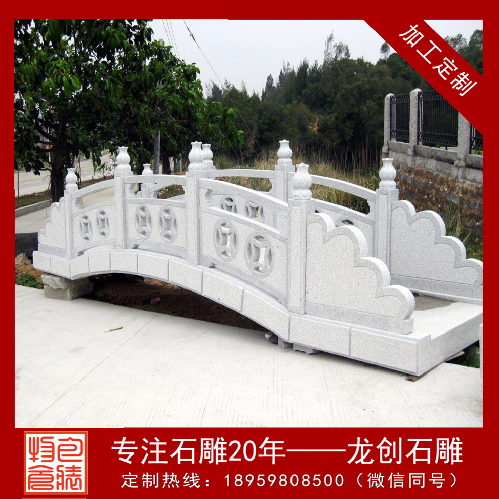 石拱橋欄桿一般安裝在寺院、風(fēng)景區(qū)、別墅、小區(qū)等場(chǎng)所。而惠安龍創(chuàng)石雕工藝有限公司雕琢設(shè)計(jì)的石拱橋欄桿能更大化更全面的給人們帶來吉利。在石拱橋欄桿上我們常見的吉利圖畫有滿意云紋,標(biāo)志著吉利滿意;卍字紋、擬日紋,標(biāo)志著萬德吉利;蝙蝠紋、荷花紋、祥云紋、蔓草紋等吉利圖案。