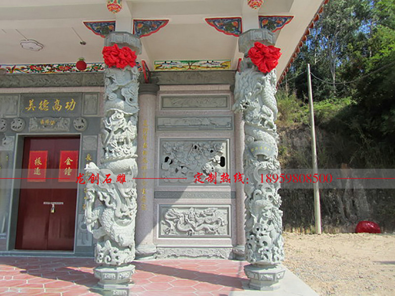 石雕圖騰柱作為工藝美術(shù)的重要門類之一,龍自然是重要的甚至是主宰一切創(chuàng)作內(nèi)容。時至今日,我們尚無可靠查獲的資料供以研究石雕蟠龍柱在石雕開始于史何年何代,我們只能就目前所能查詢的石雕圖騰柱和遺存寶物來做具體分析,根據(jù)目前掌握的寶物查料,可以推斷蟠龍石柱的出現(xiàn),大致是在宋以后,而現(xiàn)存寺院內(nèi)的石雕圖騰柱,從其姿態(tài)分析,大多是明、清代的作品,其中尤以清代作品居多。姿態(tài)的不同是石雕圖騰柱造型的一個重要劃分。飛龍柱,降龍柱,亢龍柱,下面我們簡單了解一下: