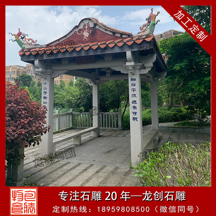 3、惠安縣龍創(chuàng)石雕工藝有限公司是一家石雕涼亭生產(chǎn)廠家,公司雕刻生產(chǎn)各種石雕制品和定做石雕涼亭,品質(zhì)有保證,款式新穎,樣式齊全,物美價廉。歡迎來電咨詢。