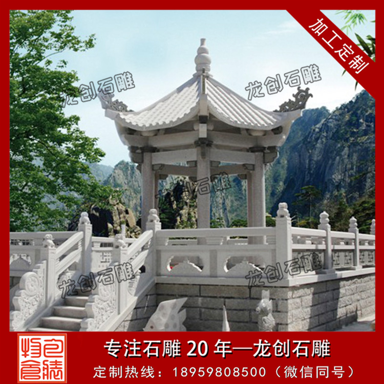 石雕涼亭是指用石頭加工而成的亭子,多建于路旁,供行人休息、乘涼或觀景用。石亭子一般為開(kāi)敞性結(jié)構(gòu),沒(méi)有圍墻,頂部可分為六角、八角、圓形等多種形狀。其材質(zhì)多選用青石、花崗巖等。