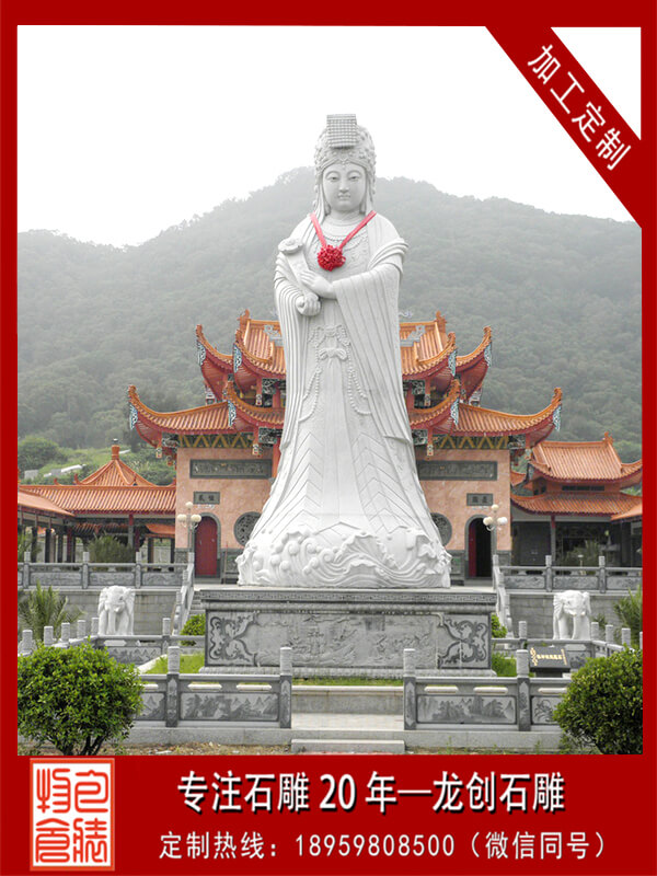 媽祖石雕,以中國東南沿海為中心的海神信仰,又稱天上圣母、天后、天后娘娘、天妃、天妃娘娘、湄洲娘媽等。這一信仰的主體據(jù)說是由真人真事演變而來的??疾鞁屪娴纳降弥@一信仰來自民間傳說。首先是傳說,然后是傳說的歷史化和神化,最后形成普遍的媽祖信仰。