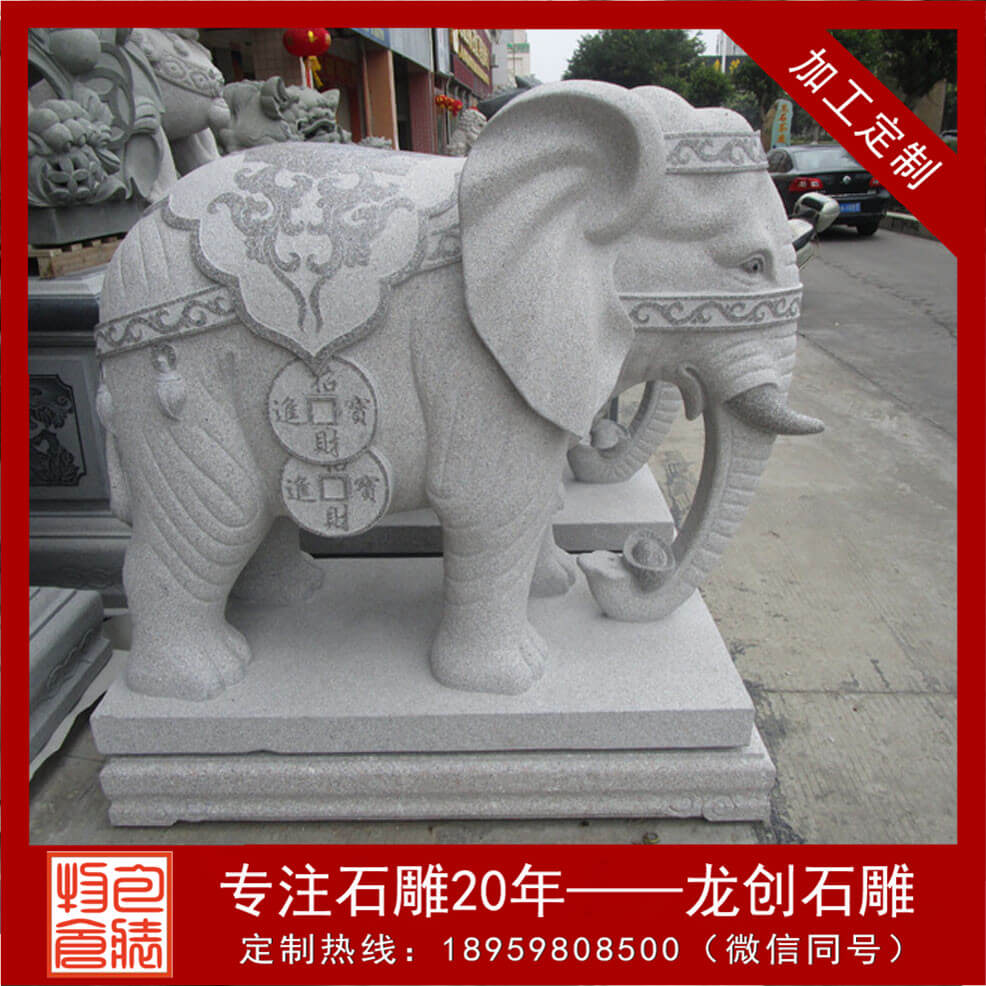 石雕大象就是用石頭雕琢出來的大象,是在我國傳統(tǒng)建筑中經(jīng)常運用的一種裝飾物。在我國的宮殿,寺廟,佛塔,橋梁,府邸,園林及陵墓上都會看到它。其可用的石材有福建白麻石、青石、黃銹石、漢白玉、花崗巖、大理石、雪花白等。