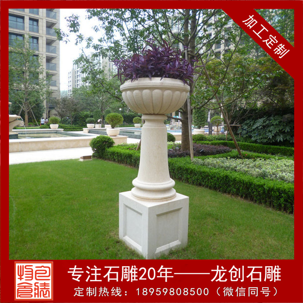 被精雕細(xì)琢而成的天然石雕花盆。形態(tài)逼真,許許如生。適用于小區(qū),廣場,園林,酒店,學(xué)校,戶外園林景觀工程等場所。這些花缽靈活多樣,隨處可用,尤其對于城鄉(xiāng)建筑比較密集和其他一些難于綠化地區(qū)的美化,有著特殊的意義。美化環(huán)境時,可根據(jù)缽、盆樣式、大小的不同,進(jìn)行多種多樣的藝術(shù)組合。組合的形式可以是幾何式、自然式、混合式、集中布置、散置等,具體布局形式要由美化地點的具體情況決定。在較寬敞的地方,如廠前區(qū)、廣場、大型建筑門前、道路交叉口、停車場等處,小區(qū)石雕花盆可布置為樣式多變、五彩繽紛的小花壇,在商店、住宅的門前可隨機點綴一二。石雕噴泉花缽制作設(shè)計多種多樣,可以是圓形、半圓形、方形、多邊形等,立面可以分單層、多層等。設(shè)計的依據(jù)是要配合應(yīng)用地點的環(huán)境特點。