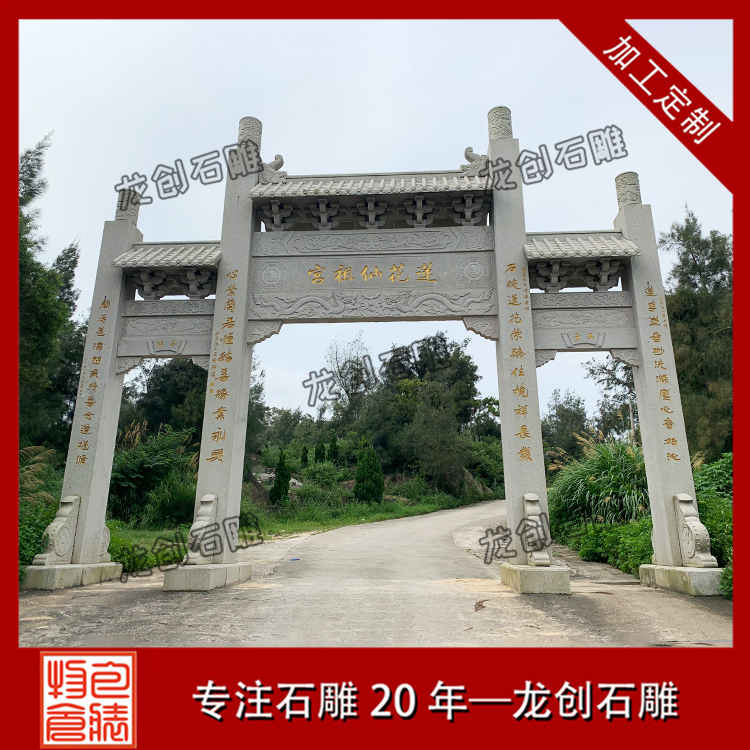 花崗巖石牌樓廠家龍創(chuàng)石雕生產(chǎn)的石牌樓古樸典雅、新穎美觀,無(wú)論人物或動(dòng)物都栩栩如生,成為提升形象、營(yíng)造古典文化的一大特色。我廠專業(yè)制作設(shè)計(jì)各種石牌樓,青石牌樓定制,在石雕行業(yè)中有著專業(yè)的技術(shù)團(tuán)隊(duì),可以為每一個(gè)地方設(shè)計(jì)出具有他們當(dāng)?shù)匚幕氖茦牵垊?chuàng)石雕全體員工熱誠(chéng)歡迎您前來(lái)參觀。