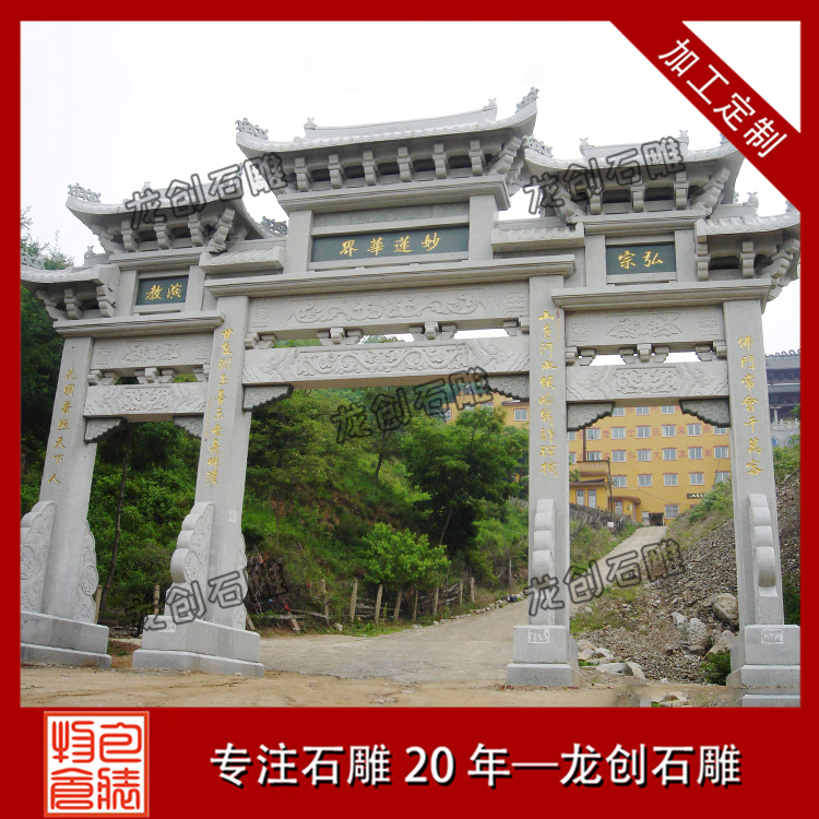 龍創(chuàng)石雕,專業(yè)的石雕牌坊加工生產(chǎn)廠家,我們致力于打造具有中國文化特色的石雕牌坊。我們以傳承中華文化為已任,不斷開發(fā)創(chuàng)新牌坊的設計和雕刻。讓每一塊石頭都銘記下曾經(jīng)的光輝歲月,讓每一座牌坊都見證中華文化的輝煌和燦爛。定做石雕山門牌坊廠家,歡迎找我們龍創(chuàng)石雕。